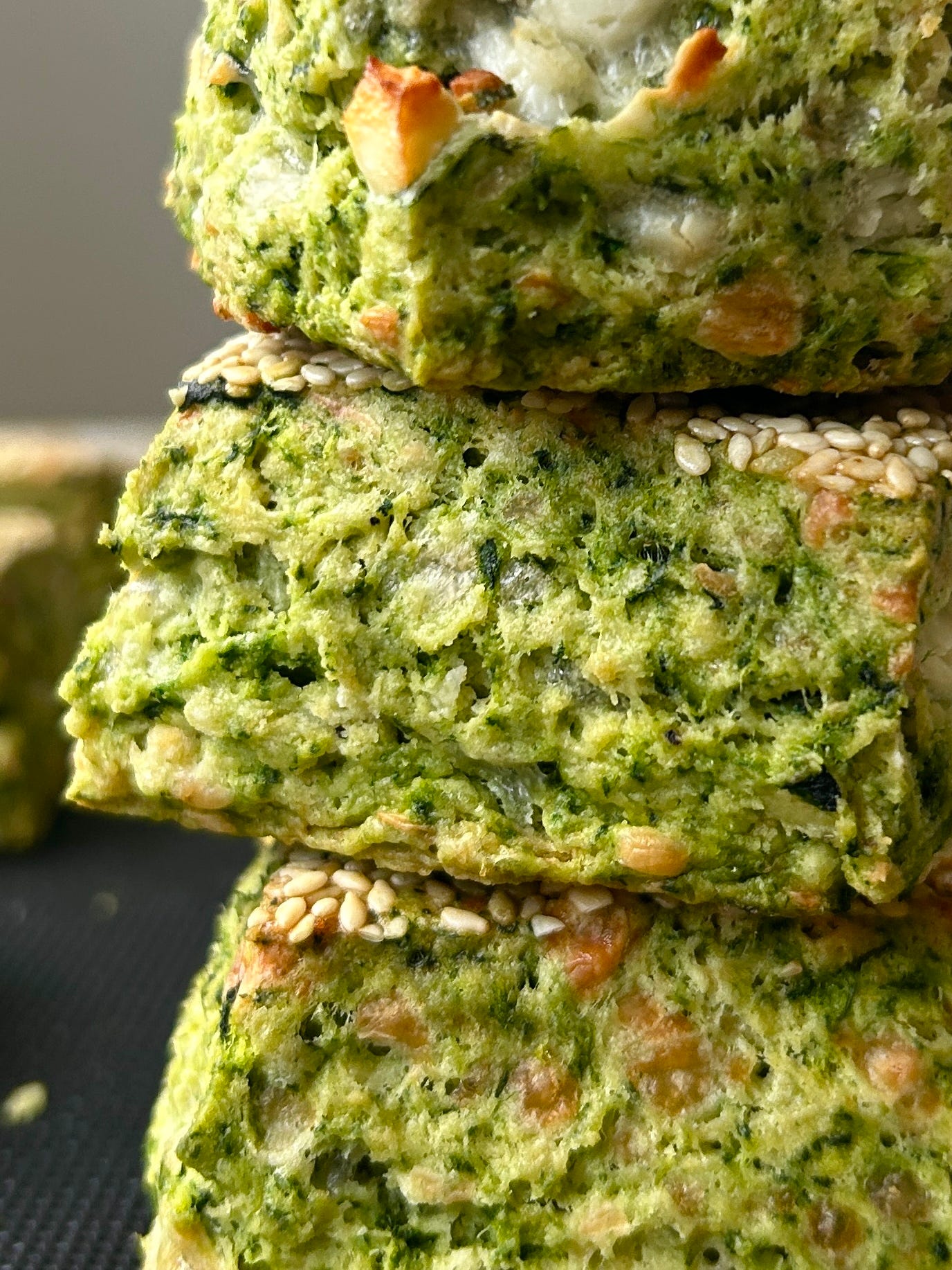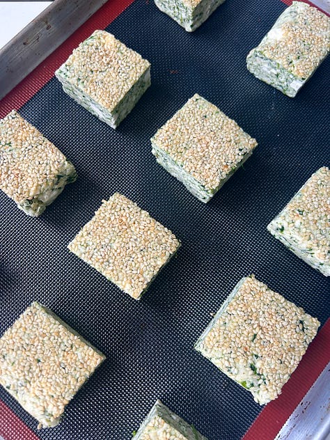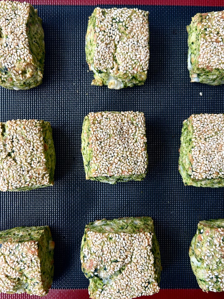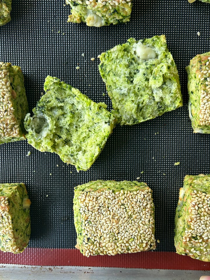 Vibrant green scones loaded with fresh spinach, feta and topped with crunchy toasted sesame seeds
